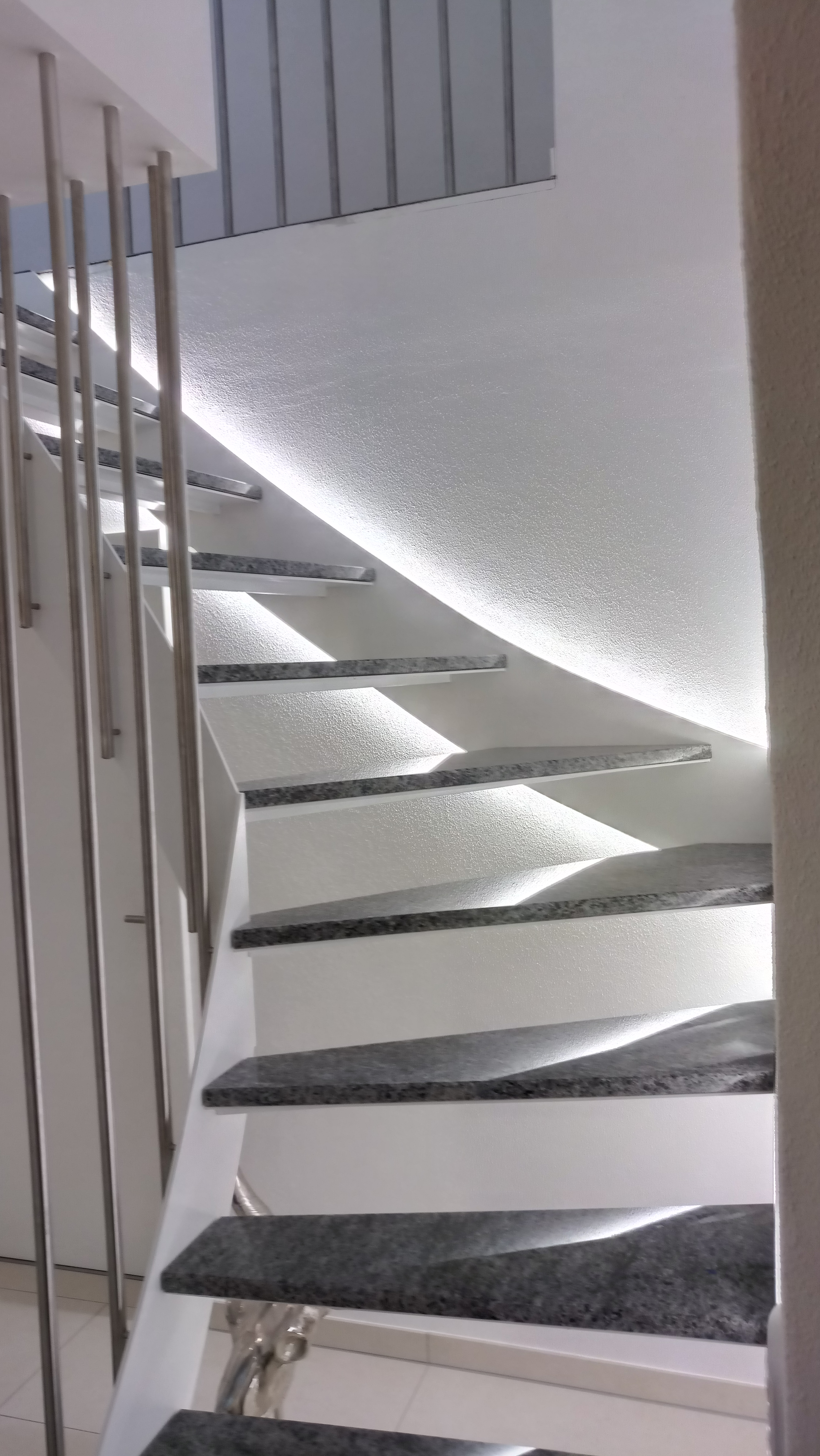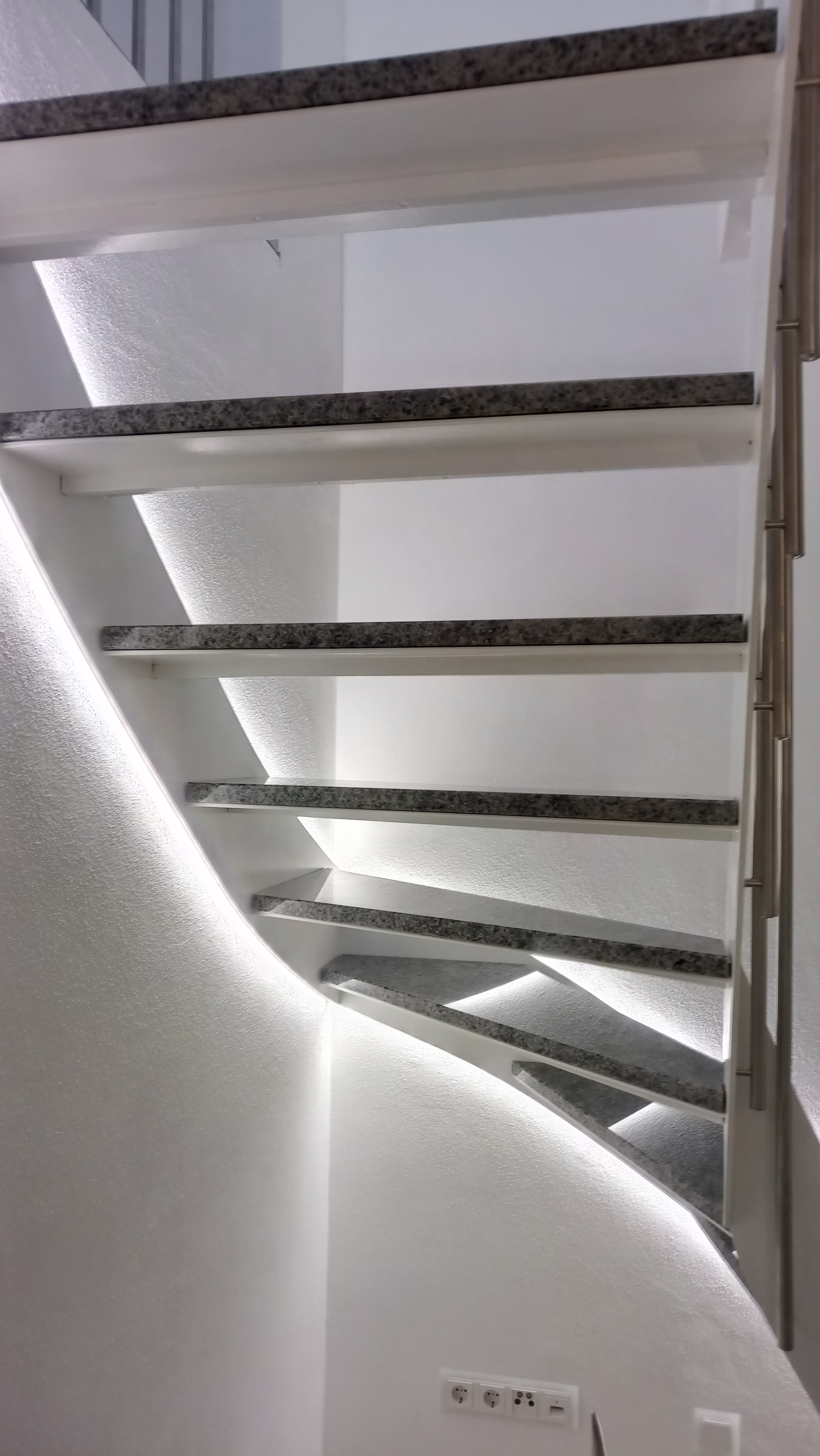 - freischwebende Wangen ohne Bodenkontakt, da bereits fertiger Fußboden mit integrierter Fußbodenheizung vorhanden war