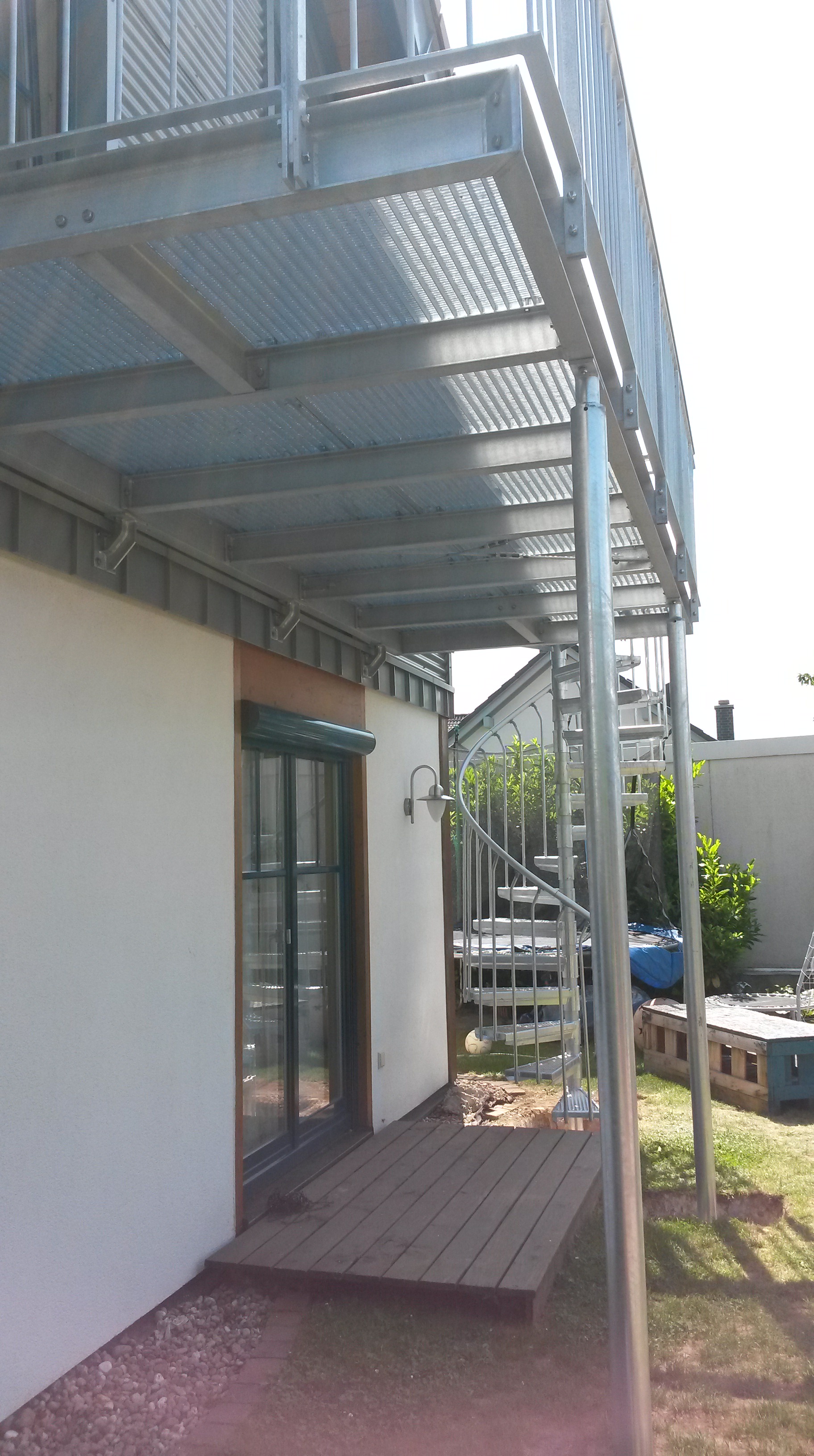 Im gemeinsamen Planungsgespräch wurde klar: Eine feuerverzinkte Stahlkonstruktion mit angegliederter System-Spindeltreppe ist hier die ideale Lösung.